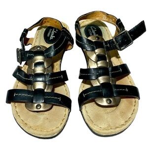 Clarks Artisian sandals straps buckle closure black and bronze cushioned #OSS