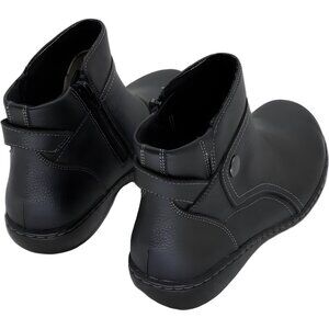 Sleek ankle boots blend versatile style and everyday comfort. Classic black pairs effortlessly with jeans, dresses, or office looks. Lightweight design for all-day wear.