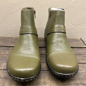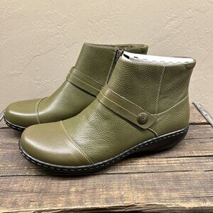 Clarks Ashland Pine Women’s Ankle Boots Olive Pebbled Leather Size US 10M New