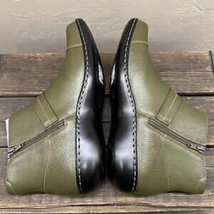 Clarks Ashland Pine Women’s Ankle Boots Olive Pebbled Leather Size US 10M New.