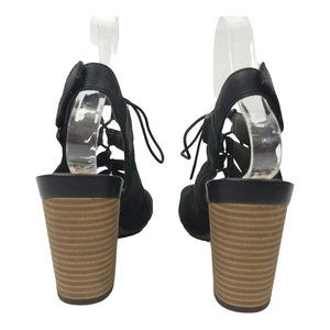 Clarks Banoy Waneta Nubuck Sandals Womens Sz 8.5 Chunky Block Stacked Heel Black