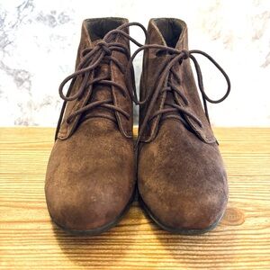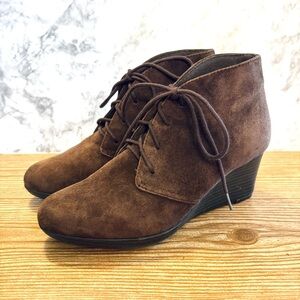 Clark’s Bendable Brown Suede Leather Wedge Ankle Boots Booties Size 6