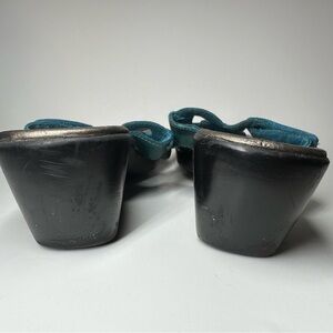Clarks Bendable Women Sandals Wedge Slip On Floral Strappy Leather 9.5 Teal Blue