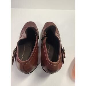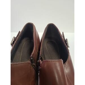 Clarks Bendables Ankle Boots 11M Casual Zip Bootie Brown Leather Heels Buckle