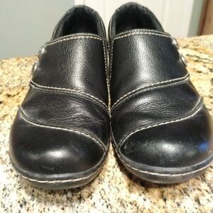 Clarks Bendables Ashland Alpine 62637 Slip On Black Leather Flat Shoes Women's Sz 9 M
