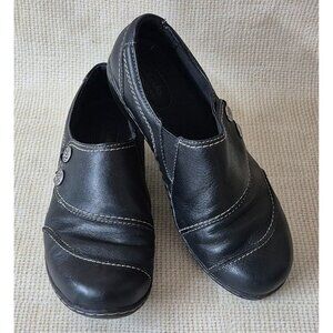 Clarks Bendables Ashland Alpine Slip On Black Leather Flat Comfort Shoes Size 9W