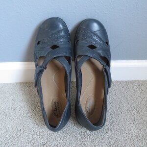 Clarks Bendables Ashland Rivers Womens Shoes Size 10 Blue Leather Cushioned65065