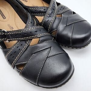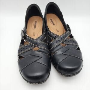 Clarks Bendables Ashland Spin Q Shoes Size 11 Black Leather Comfort Closed Toe
