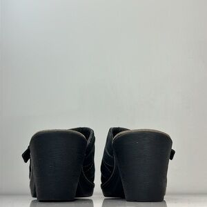 A stylish womens clog accented with crisscross straps. Full grain leather buckle accents. Lightweight rubber outsole