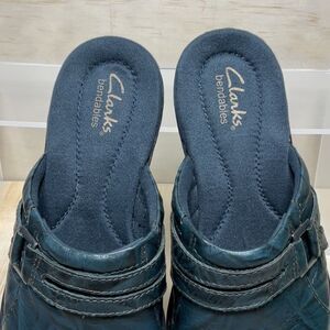 Clarks Bendables Blue Leather Slip-On Loafer Clog Women 6.5 Mule 67157