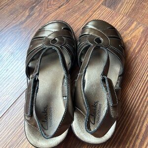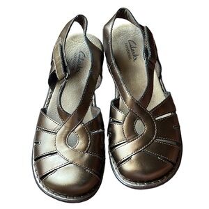 Clarks Bendables Bronze Leather Sandals. Sling Back. Sz 6M