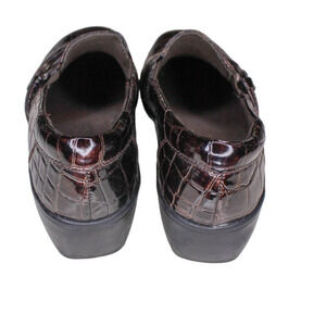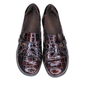 Clarks Bendables brown croc embossed faux leather slip on loafer clog shoes
