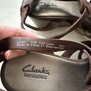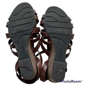 Clarks Bendables Brown Leather Ankle Strap Gladiator Ladies Sandals, 9M