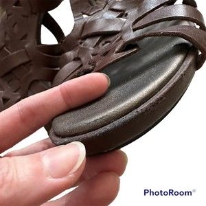Clarks Bendables Brown Leather Ankle Strap Gladiator Ladies Sandals. Has a minor scuff on the front as shown on the last photo.