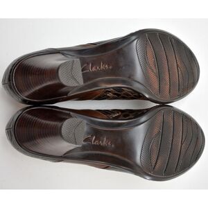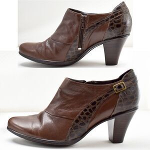 Clarks Bendables women's size 9.5 leather booties. Brown leather upper with crocodile embossed leather heel counter and accents with faux buckle. Clean padded insole, man made soles. Excellent condition.