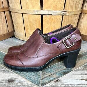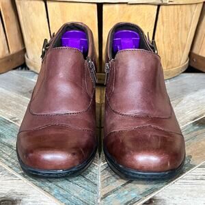 Clarks Bendables Brown Leather Buckle Strap Zip Pump Booties Womens Size 7