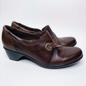 Clarks Bendables Brown Leather Heeled Loafers 10M