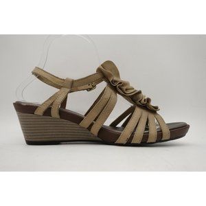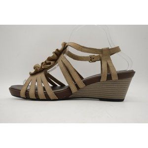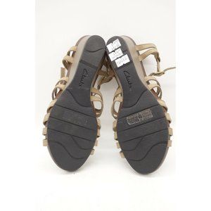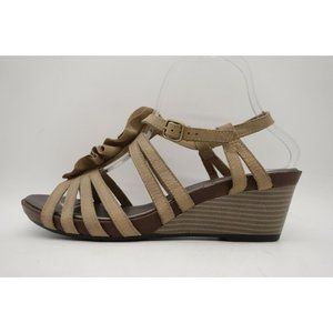 Clarks Bendables Brown Leather Slip On Buckle Wedge Sandals Shoes Women's 8 M