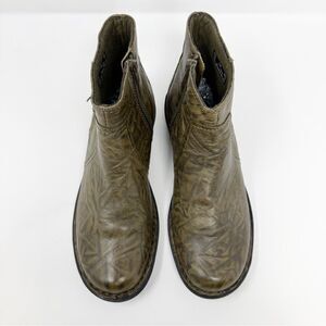 Clarks Bendables Crinkle Leather Wedge Bootie Green 68741 Size 7.5