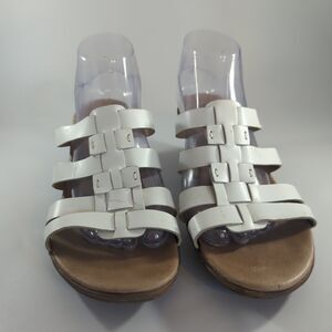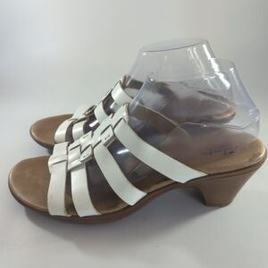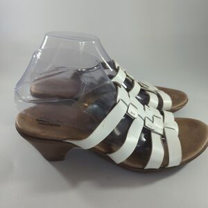 Clarks Bendables Ladies White Leather Slip On Heeled Sandals 9M