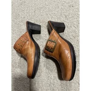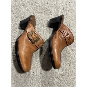 Clarks Bendables Leather Clogs Slip On Mules Women's Size 9.5 M Shoes Tan 83546