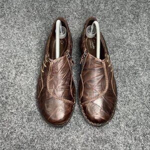 Clarks Bendables Loafers Women's Size 9.5 Brown Leather Inside Zip Slip On Shoes