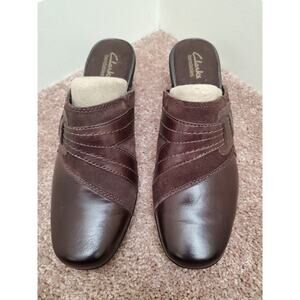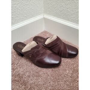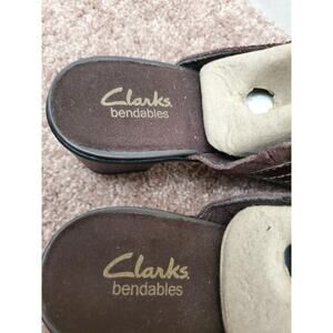 Clarks Bendables New Mocha Brown Leather Slip On Platform Mule Shoes, Womens 9.5