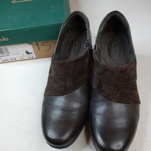 Clarks Bendables 'Promise Josie' Brown Leather Ankle Booties Size 9.5M. Side zip. 2.5" heel. Shipped with USPS Priority Mail. 259pem