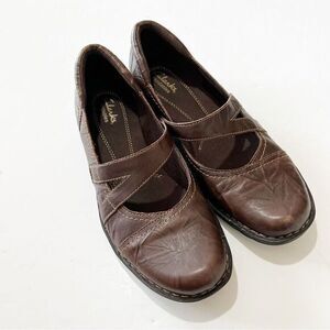 Clarks Bendables Rumpled Brown Leather Mary Jane Flats Women’s Size 9 Lagenlook