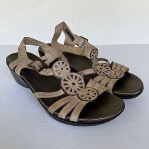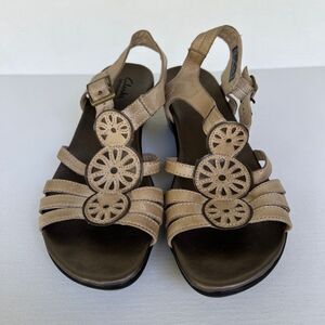 Clarks Bendables Sandals Size 9M Tan Medallion Laser Cut Strappy Leather