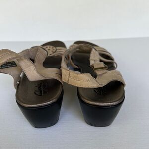 Clarks Bendables Tan Leather Medallion Laser Cut Strappy Sandals. Size 9M. Style 65767. There is some minor discoloration to the leather.