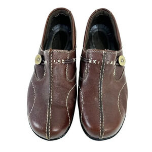 Clarks Bendables Size 7.5 M Brown Leather Loafer Slip On Upper w/ Button, 35063