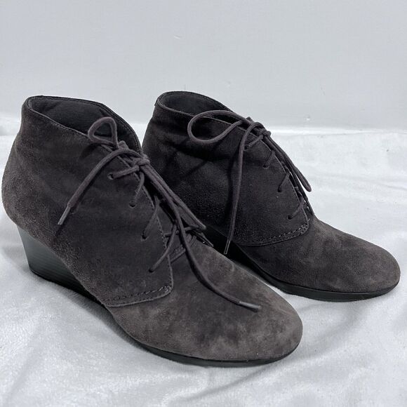 Clarks Bendables Suede Wedge Booties Size 8.5 M Gray Bohemian Lace Front Witchy