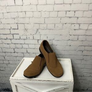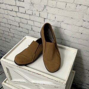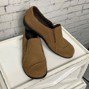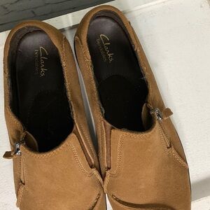Clarks Bendables Tan Suede Side Zip Wedge Loafer Shoes 64890 Womens 6W