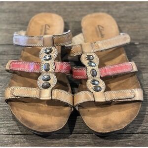 Clarks Bendables Women's 8.5 Brown red Beaded Sandals adjustable GUC