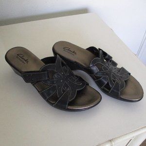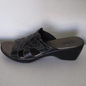 Clarks Bendables Womens Black Leather Slide Wedge Sandal - Size 7M