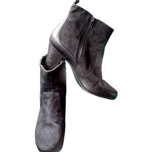 Classic and comfortable, these Clarks Bendables black suede booties feature a side zip for easy wear and a stacked heel for a versatile look. With cushioned insoles and flexible Bendables technology, they’re designed for all-day comfort while keeping you stylish. Rich suede with leather trim makes them easy to pair with jeans, dresses, or workwear. Approx. heel height: 2.5". Style #62608. Excellent pre-owned condition with only minor signs of wear. Like new. With maybe once.