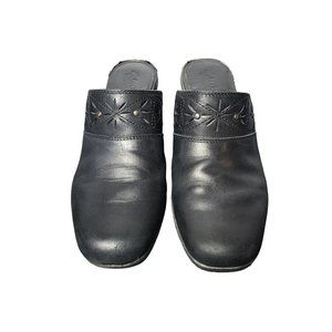 Clarks Bendables Women's Leather Floral Cutout Slip On Heeled Shoes Size 8.5