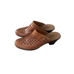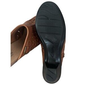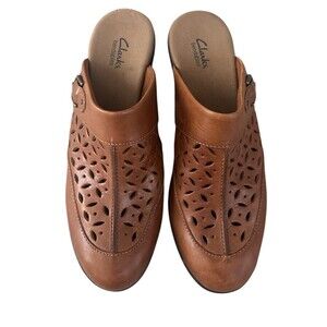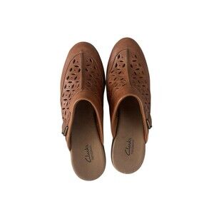 Clarks Bendables Women’s Leather Floral Laser Cut Mules Clogs Tan Size 9M