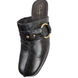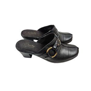 Clarks Bendables Womens Shoes Leather Slip-On Mule Clogs Buckle Size 7M Black