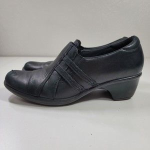 Clark's Bendables Womens Size 8.5 Black Leather Heeled Slip On Casual Dress Shoe