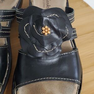 Clarks Bendables Black Leather Comfort Sandals Wedge Heel Flower Women’s 7 M