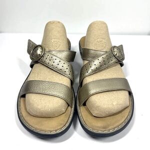 Clarks Bendables Leather Sandals Metallic Gold Open Toe Slide Slip On Size 10