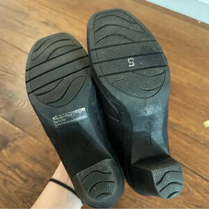 Clarks Black Leather Block Heel Slip On Size 7 M 80825 bendable comfort
