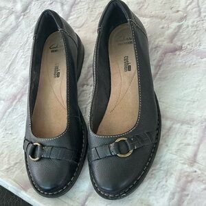 Clarks Black Leather Flats Classic Loafers