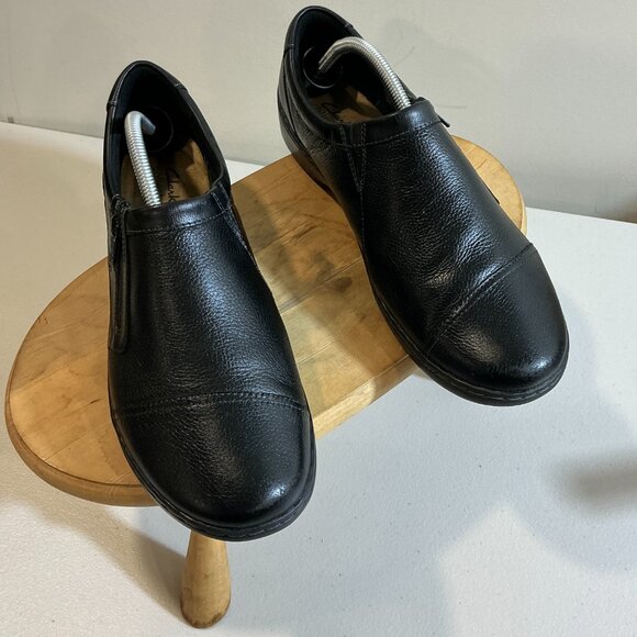 Sleek black leather flats. Comfortable and stylish. Perfect for everyday wear.