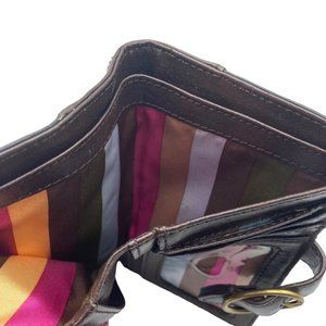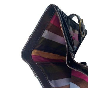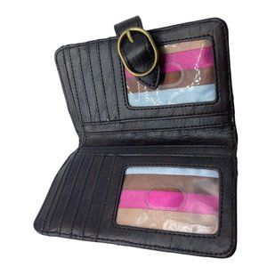 Clarks Black Leather Hand Wallet Snap Closure Embossed Brand 6.5" x 4"