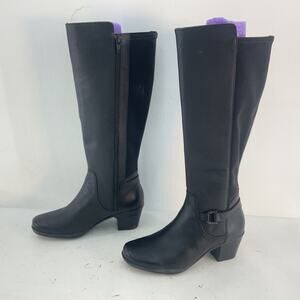 Clarks Black Leather Heeled Riding Boots Women’s Size 5 NWT