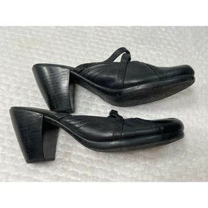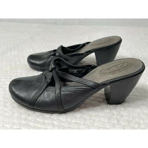 Clarks Black Leather Heels Backless Cutout Strap Size 7.5