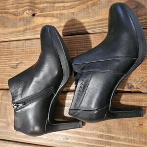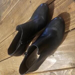 Step out in style with these chic black high heel booties from Clark's. Crafted with premium leather, these booties feature a sleek design that complements both casual and formal outfits. The side zip closure ensures easy on and off while maintaining a snug fit. With a comfortable heel height, they are perfect for all-day wear without compromising on style. Whether you're heading to work or going out for an evening, these versatile booties will be your go-to footwear choice.
